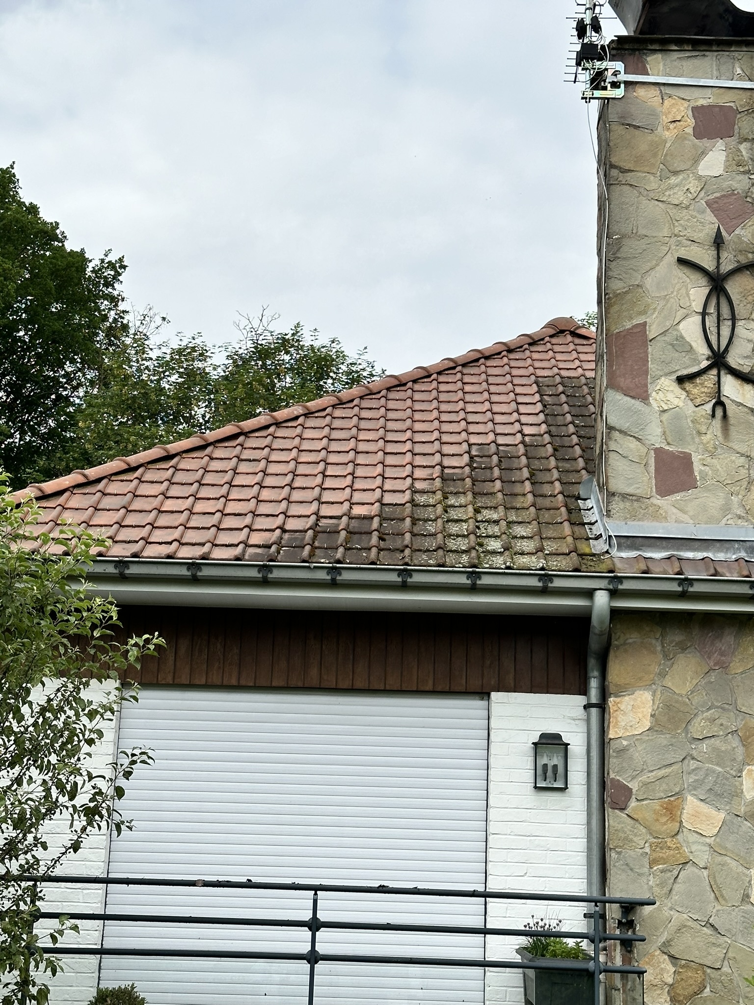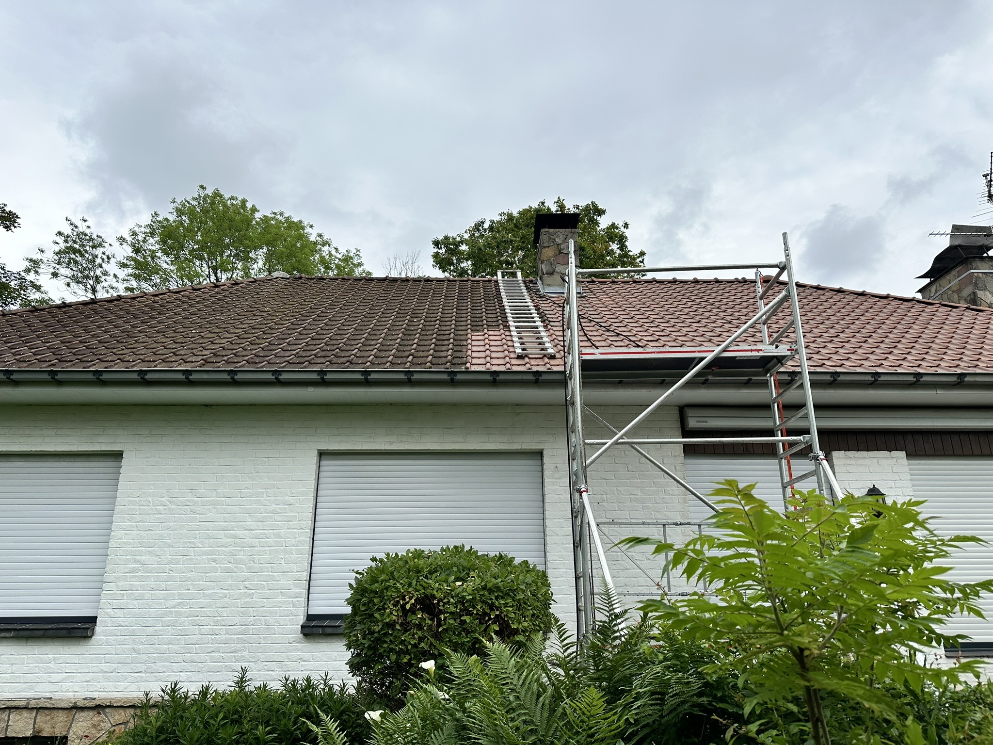 Nettoyage de toiture à la vapeur d’eau (environ 100°C et à basse pression (60 bars) et application d’un hydrofuge permettant une protection de la toiture pour 10 ans